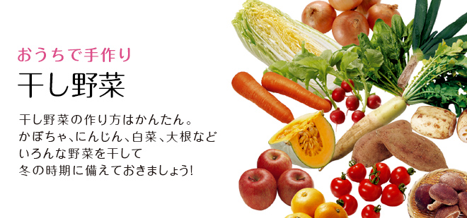 干し野菜の作り方はかんたん。 かぼちゃ、にんじん、白菜、大根など いろんな野菜を干して 冬の時期に備えておきましょう!